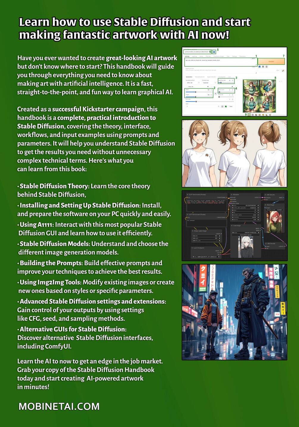 This book will walk you through everything you need to know to make fantastic art with Stable Diffusion. You'll be able to make anything, and produce high quality visuals for your work - or for personal projects.